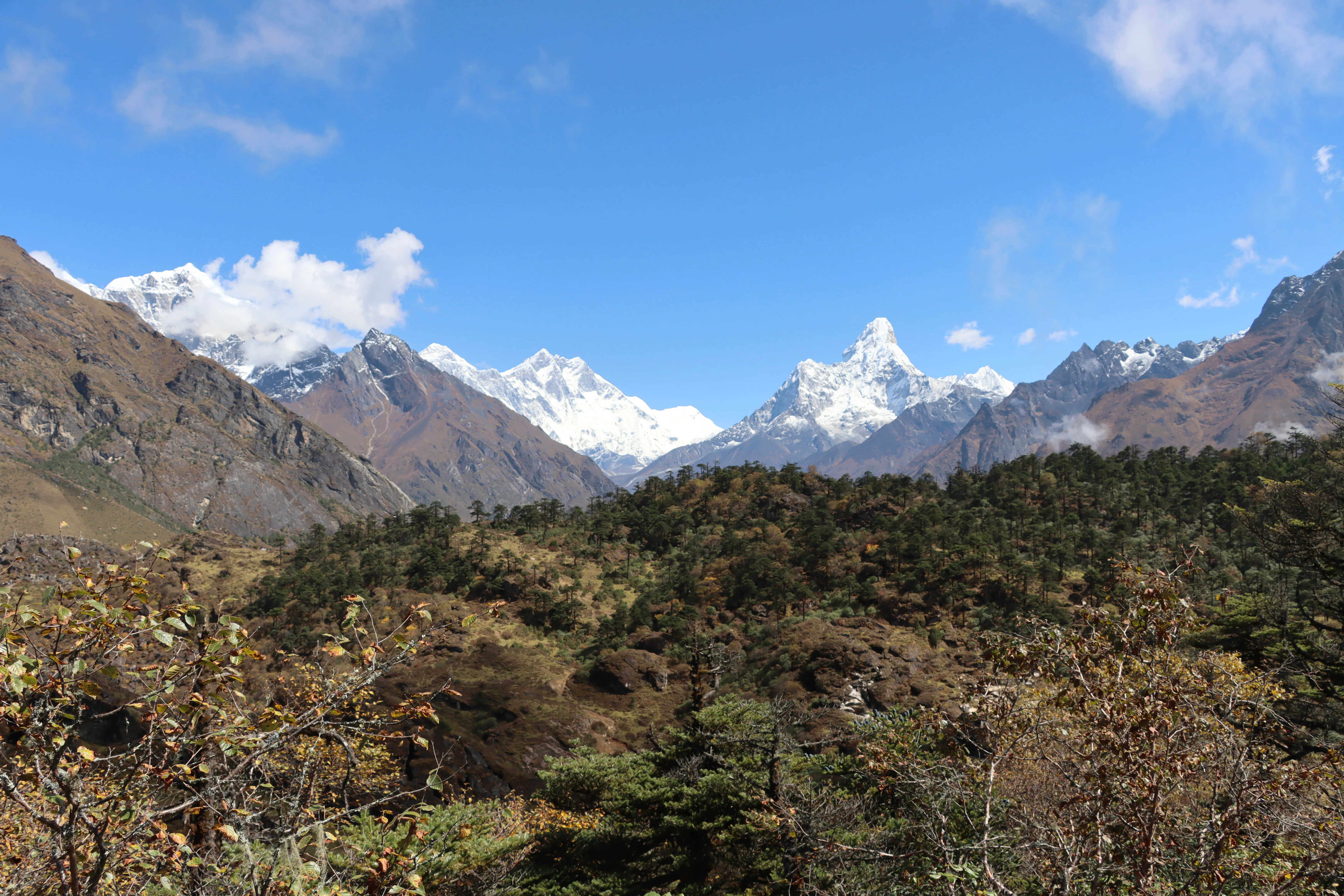 Early next morning, you will fly to Lukla airport (the gateway to Mt. Everest) in a small aircraft. It is a short flight (30 minutes). Once you land at Lukla, your trek begins. You will hike through green and lush landscapes, covered with forests of pine and rhododendron. The path is gentle, allowing you to adjust to the pace of trekking in the mountains and giving you a first glimpse into the lives and culture of the Sherpa people as well as the stunning views of the Himalayas, beginning with a grand view of the sacred Khumbila (God of Khumbu).